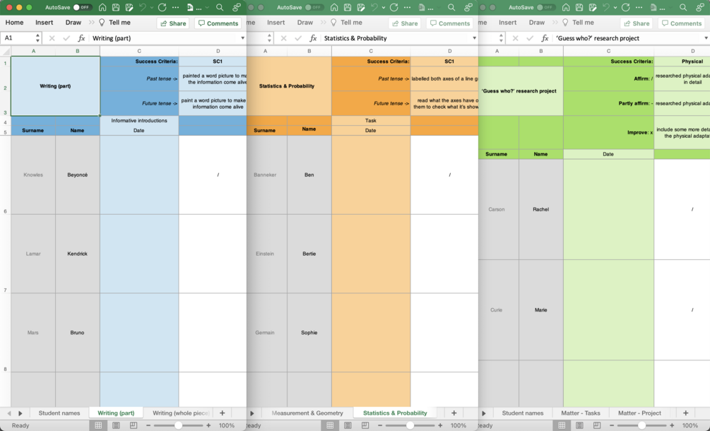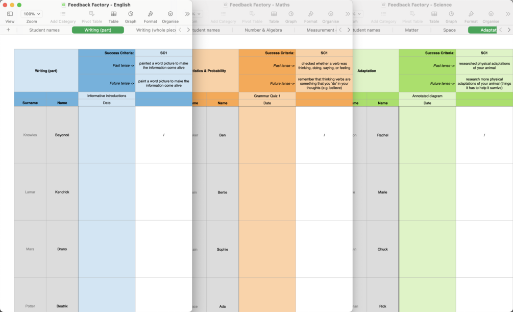 - These subject-specific templates are set up specifically for generating and recording all your valuable feedback for multiple tasks across multiple areas.
